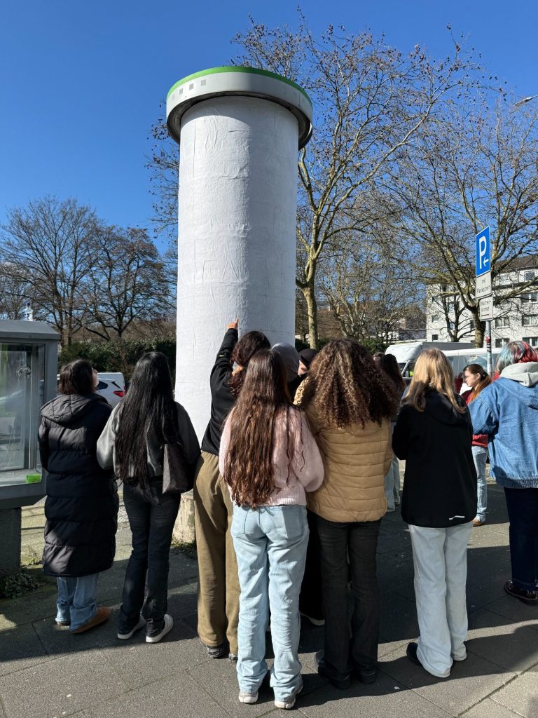 Mit Kreativität, Engagement und viel Farbe gestalten unsere Schülerinnen und Schüler Litfaßsäulen in Wuppertal. Unter der fachkundigen Leitung von Frau Anke Büttner und der Lehrerin Diana Pereira Goncalves wird der öffentliche Raum zur Ausstellungsfläche junger Kunst.