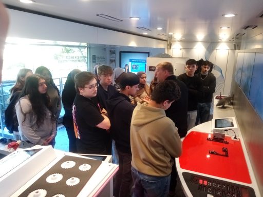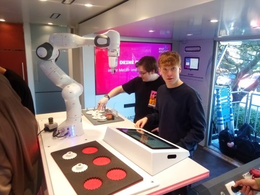 Um diese Fragen zu klären, besuchten am 4.2.2026 Schülerinnen und Schüler der Jahrgänge 9 und 10 den Metall- und Elektro Truck der Vereinigung Bergischer Unternehmerverbände (VBU) in der Wettinerstraße in Wuppertal. Neben vielen Infos, Tipps und Tricks von der Firma Vorwerk konnten wir echte Maschinen kennenlernen und ausprobieren. Metall fräsen, Schaltkreise bauen, Roboter bedienen? Gar nicht so schwierig, wenn man weiß wie es geht! Wir kommen im nächsten Jahr gerne wieder und bedanken uns für die Einladung.