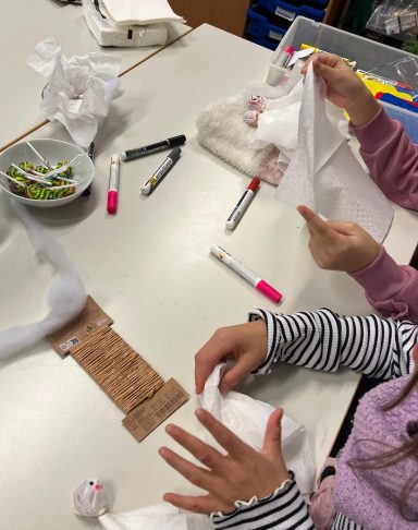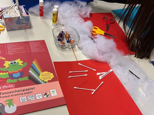Neben gruseliger Deko, Musik und Kostümen, gab es auch einige Bastelstationen, eine Schminkstation sowie lustige Gemeinschaftsspiele.