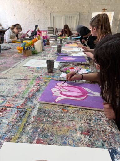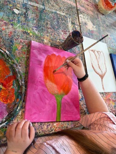 Am 12. März 2026 machte sich der 10er Kunstkurs unter der Leitung von Frau Pereira Goncalves auf den Weg in die Malschule. Dort entstanden frühlinghafte Tulpenbilder voller Farbenpracht und Leichtigkeit - kleine Kunstwerke, die die Kreativität und Freude der Schülerinnen und Schüler eindrucksvoll zum Ausdruck bringen.