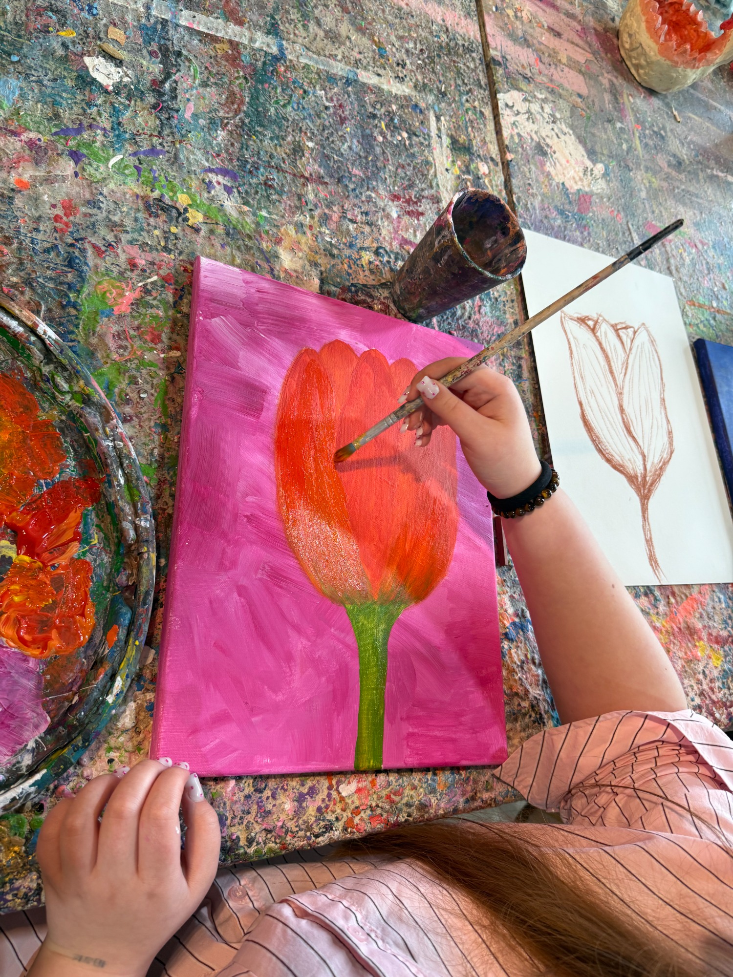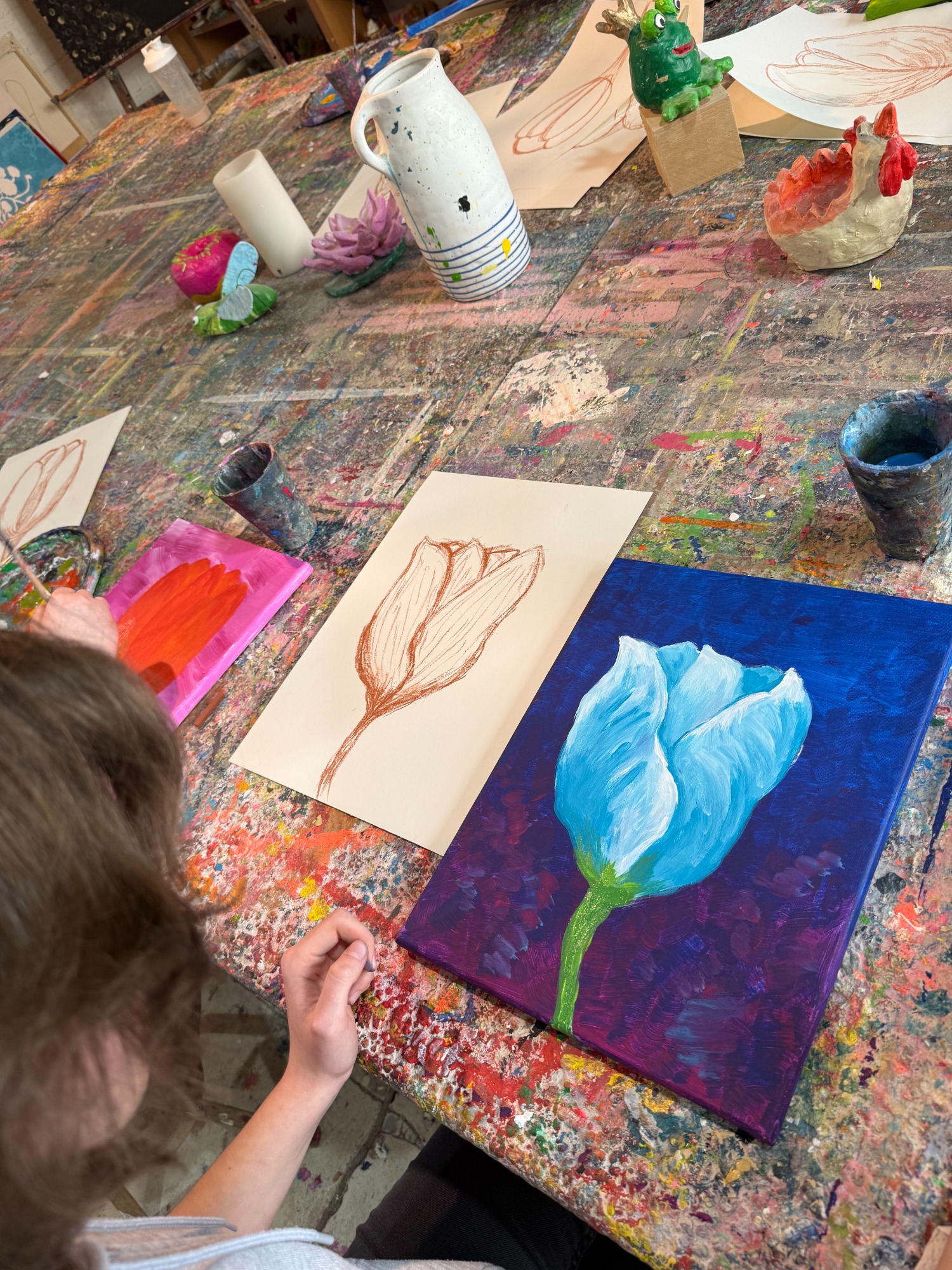 Frühlingshafte Tulpenkunst des 10er Kunstkurses